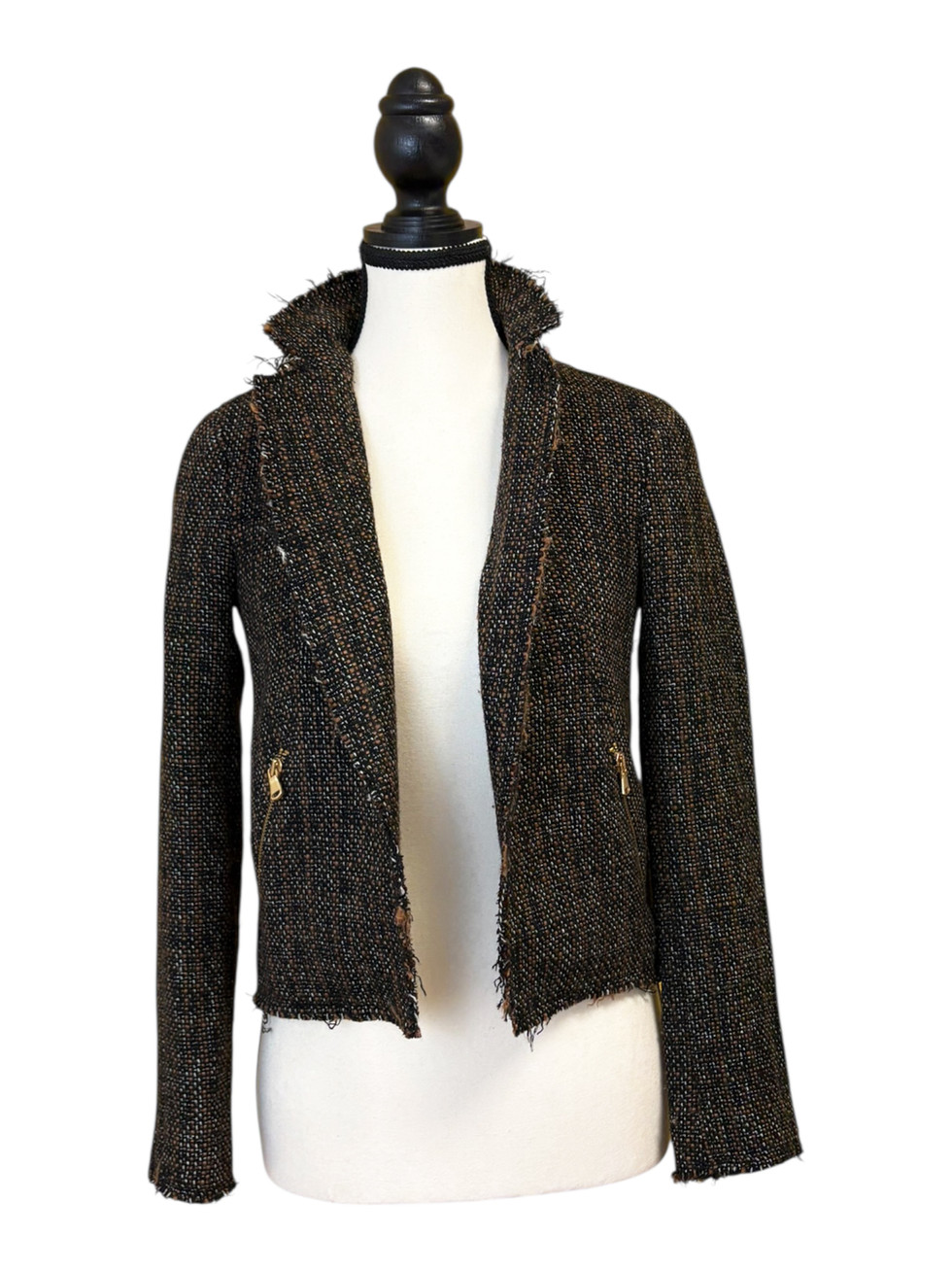Club Monaco Textured Black Copper Brown Tweed Blazer Jacket (00)