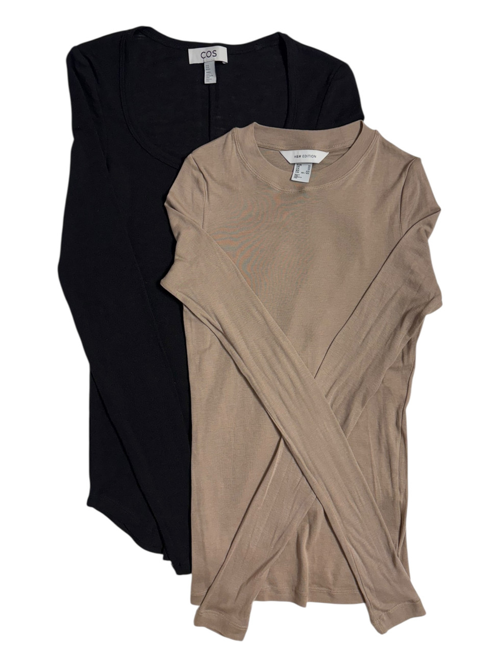 Long Sleeve Basic Lot. Black and Taupe. Cos 100% wool. H&M 100% cotton
