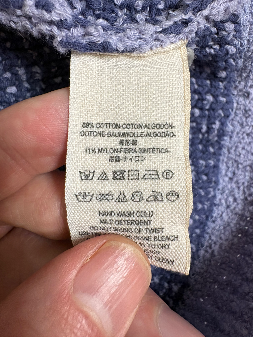 15.5" L, 20" W pit to pit, 23.5" L sleeves from neck seam. 89% Cotton.