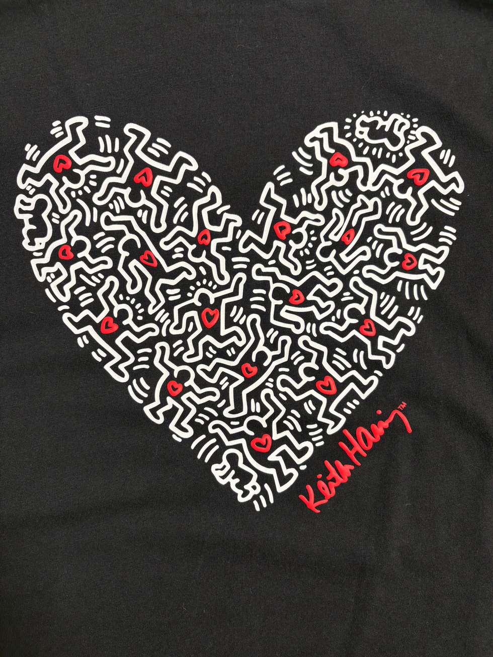 Keith Haring Women's Graphic "Hearts" Illustration Black T-Shirt.