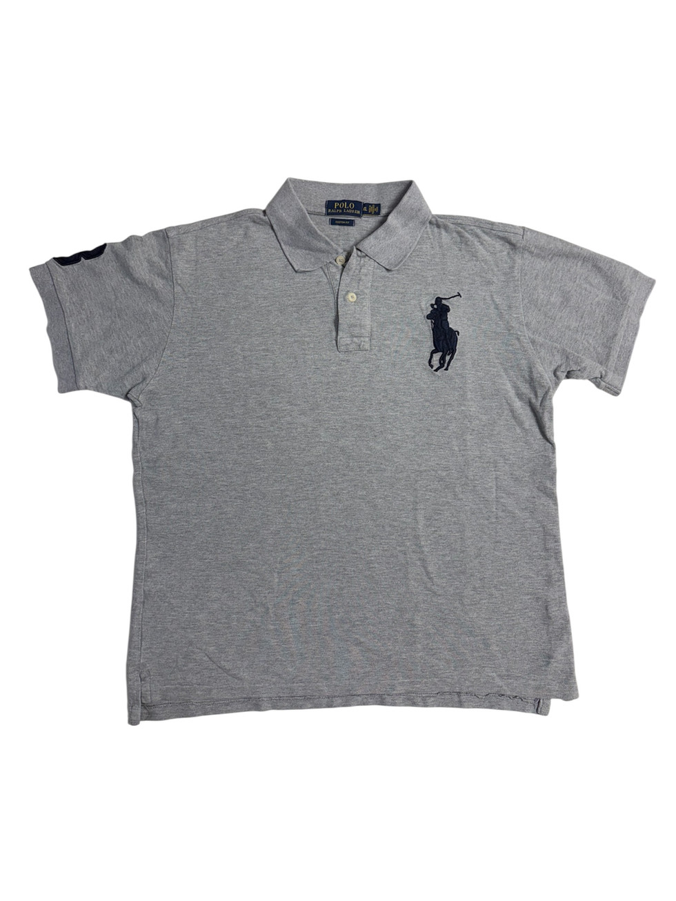 Polo Ralph Lauren Men's Grey Polo Shirt with Embroidered Logo. Number 3 embroidered on sleeve.