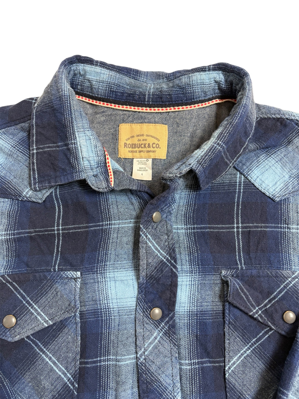 Roebuck & Co. Vintage Men's Blue Plaid Button-up Cotton Shirt (L)
