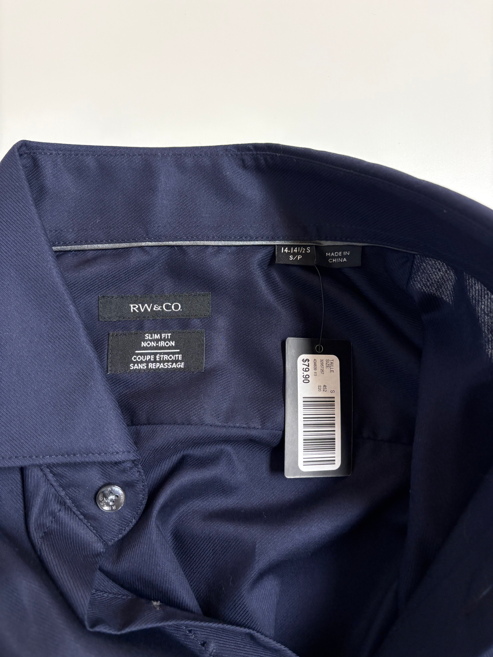 RW & Co. Men's Slim Fit Dark Navy Button-up (S)