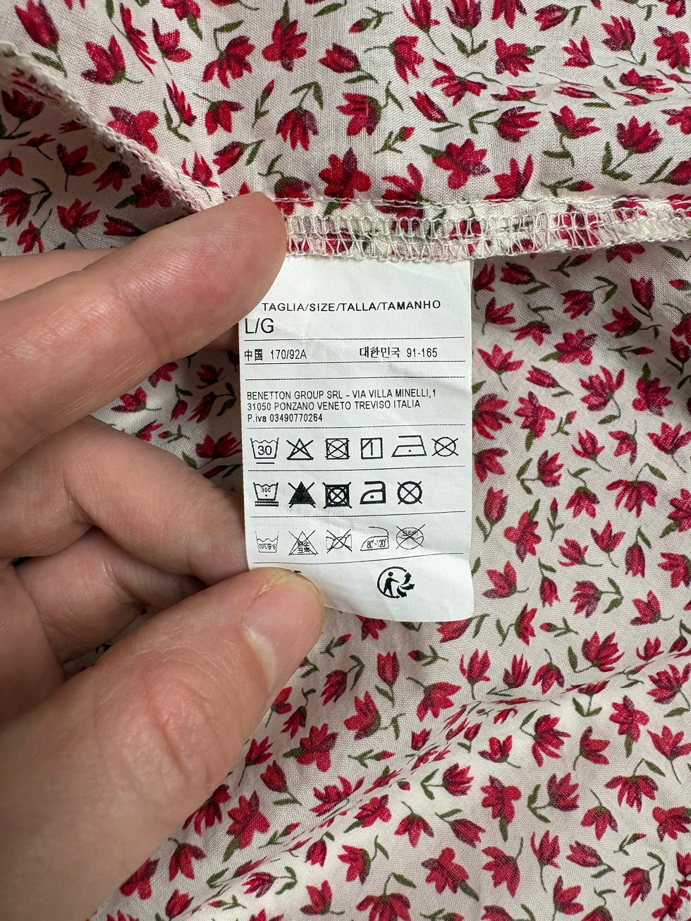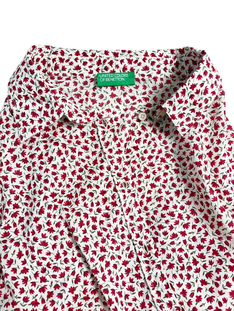 United Colors of Benetton White with Red Flower Print Blouse (L)