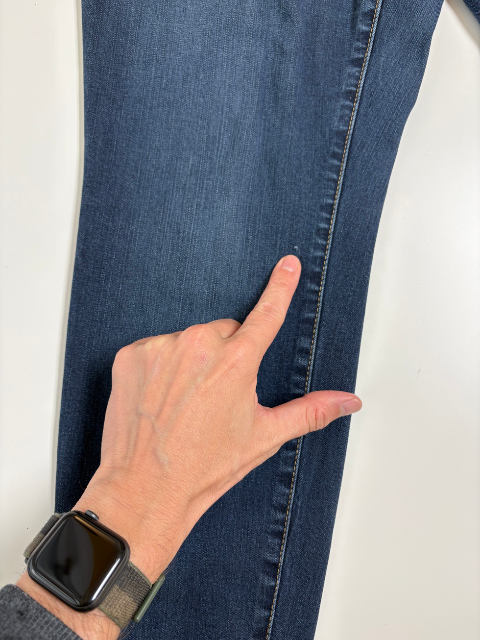 38.5" L, 28.5" inseam, 18.25" W waist.