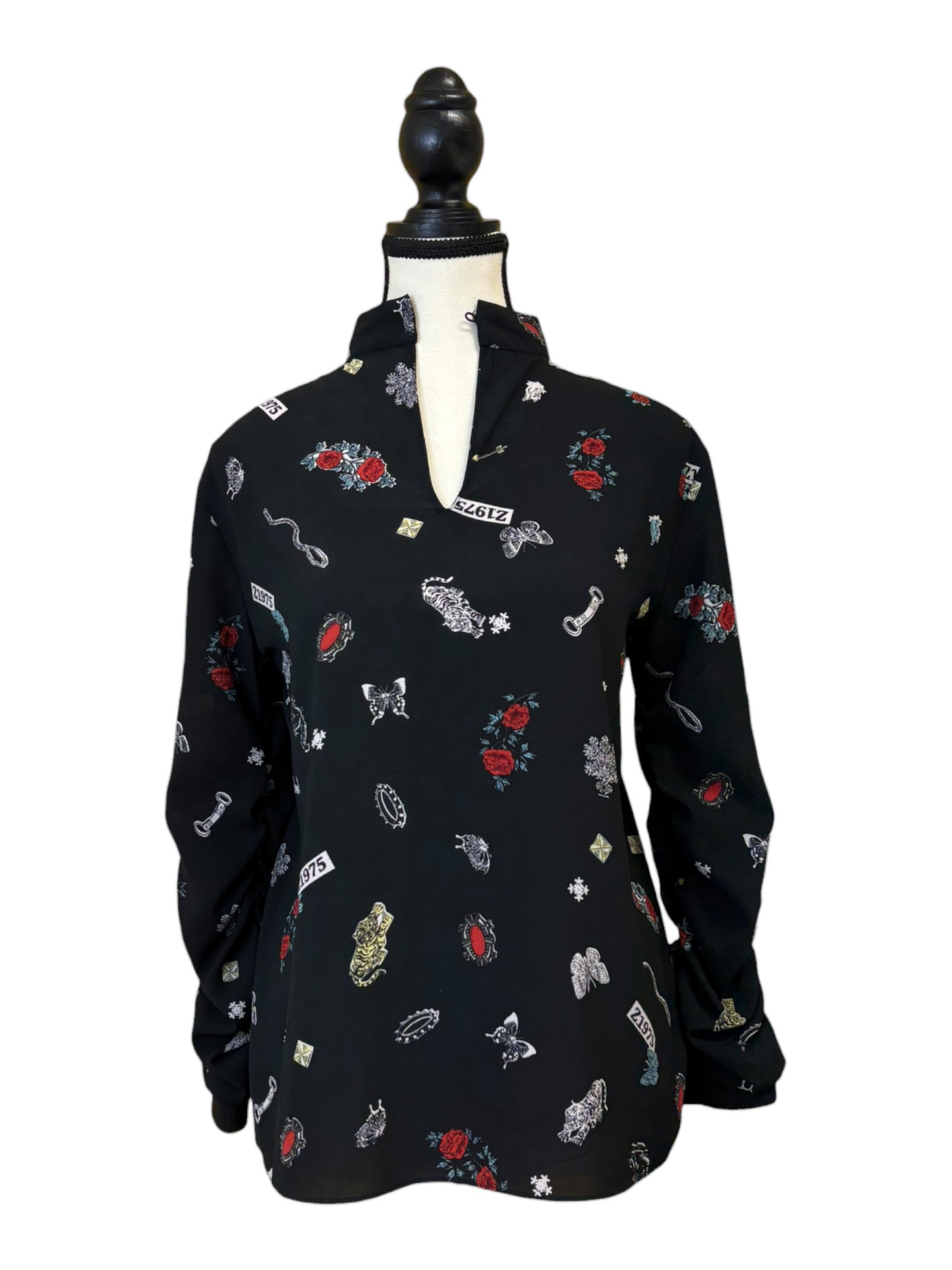 Zara Black Blouse with Graphic Print (XS)