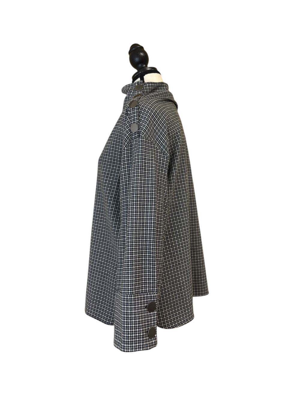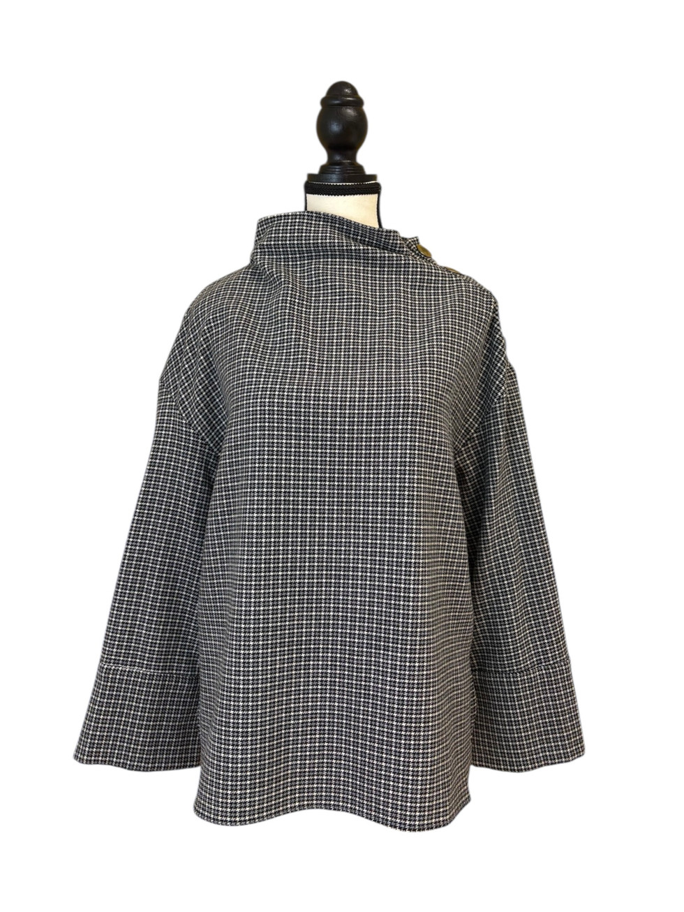 Zara Houndstooth print long sleeve top. Botton detailing.