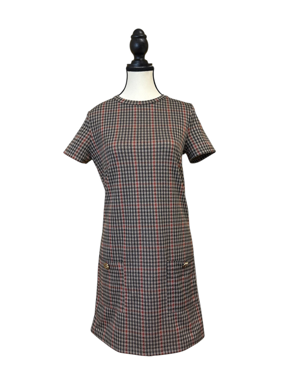 Zara Trafaluc Brown & Red Houndstooth Print Dress (S)